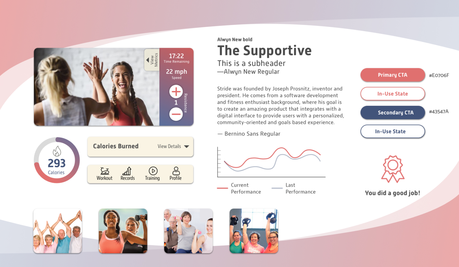 Stride 360 is inclusive of all ages, sizes, and fitness levels. For this reason, our designs will also be inclusive by utilizing realistic imagery, as opposed to only showing the idealized body shape.